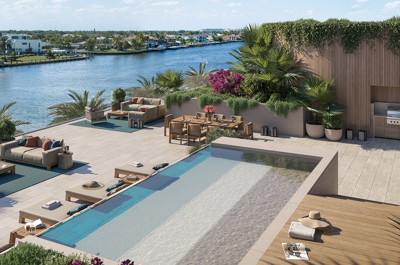 • El proyecto consta de una torre frente al mar de 10 pisos y un edificio de 3 pisos frente al Intracoastal.