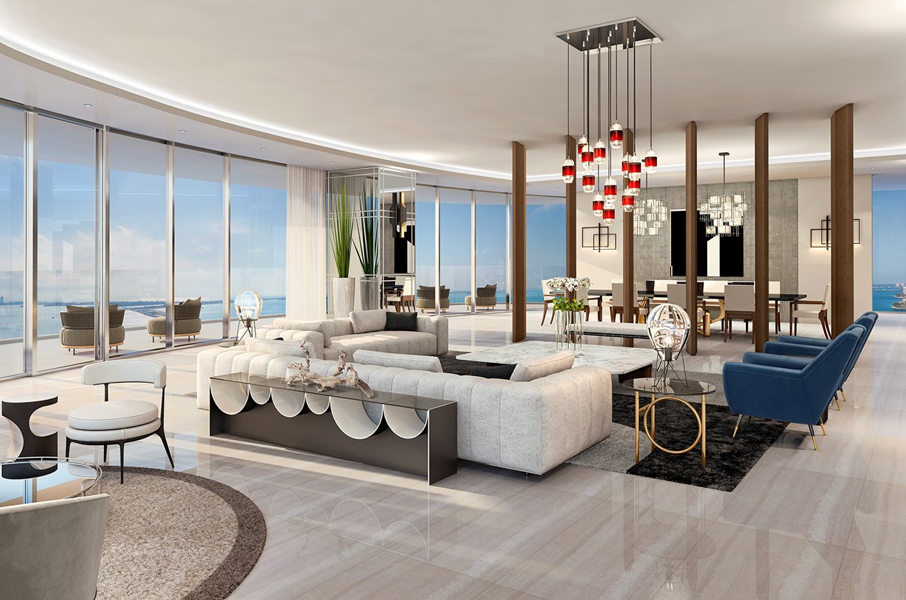 Una Residences, ubicado en el exclusivo barrio de Brickell en Miami, una torre con diseño elegante y vanguardista, ofreciendo impresionantes vistas panorámicas de la Bahía de Biscayne y el horizonte de la ciudad. Su distintiva forma curva, que evoca las olas del océano, y sus amplias terrazas definen un nuevo estándar de sofisticación frente al mar.